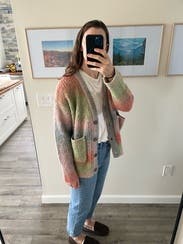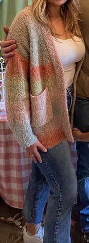 Easy cardigan to throw on. Fun colors for spring time. Did not have shape but was comfortable and soft.