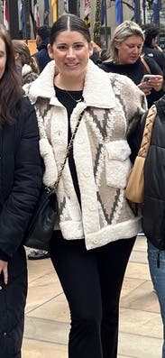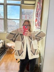 Such a fun one- love it! It’s so cozy, warm and soft. It is short and boxy which I don’t usually like, but feel like it works for this piece. Would rent again.