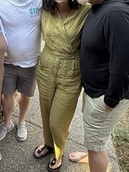 Such a cute jumpsuit! Comfortable enough for an easy hike and walking around all day on a vacation. I needed a safety pin to ensure the top stayed in place but that could be fixed if you wear a tank underneath. Needs a steam / iron if you want it to look crisp.