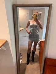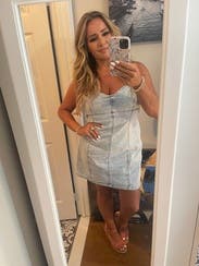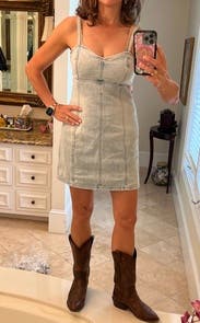 EVERYYYYBODYYYY needs this denim dress! It’s sexy with cut out sides, fitted with the strappy top and super comfortable. Wore it for a 3 hour Backstreet Boys concert and was comfy all night long! Went with an XL and it fit perfectly! 5 stars - rent this outfit you won’t regret it!!