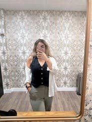 Wore this a couple of times and it was so fun! I’ve been eyeing vests and this was my first time trying one out. Love the dark navy blue color and it fit pretty well!