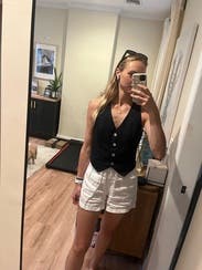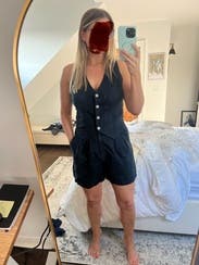 I was very apprehensive towards this vest trend but my friend had rented this top and I loved the look on her and ended up loving the look for me too. Overall the fit was perfect and it was comfortable. The material is a light linen which is great for summer. I have rented the shorts in this separately and I think i prefer to keep these items separate.