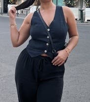 Love this navy linen vest! It looks amazing with the matching shorts, but I’ve also styled it with jeans and trousers and it works beautifully every time. The fit is flattering, true to size, and the linen fabric makes it perfect for warmer weather. A great wardrobe staple!