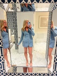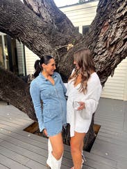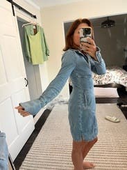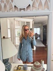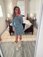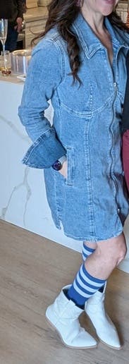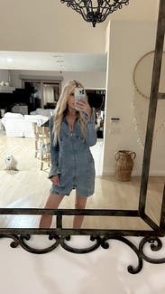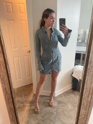 This denim dress is SO flattering and tall girl approved. It's also got some stretch to the fabric so it loosens up a bit after you wear it AKA you can eat and drink a little more comfortably in this.
