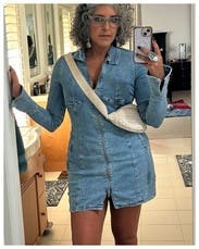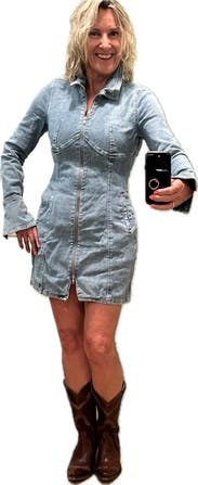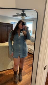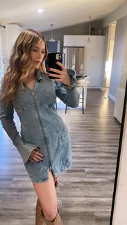 this dress was everything, i got a small normally a medium and i loved it! fit amazing & was cute but fit just right!! went out all night was super comfy- will say it’s jean so it gets hot but so worth it