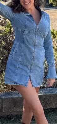 I originally ordered this to wear around the city on vacation, but I ended up wearing it out to the bars because the length of it was a bit too short for daytime (I’m 5’9 & between an 8/10 in pants) the zipper in the front makes it easy to add a bit more ~sexy~ to the outfit! The denim is very comfortable and stretchy and it has pockets!! I will be reordering in a size up next time to wear around more!