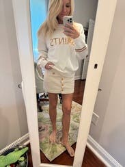 Love that its an off white and not true white. Wore to UT football game and a bday dinner. Great length. Super flattering!