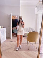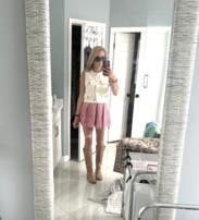 The denim top fit well, is petite friendly and made such a cute set with the skirt.