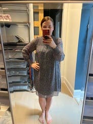 I said this was too big because it was but also what I wanted. Being early in my pregnancy, I'm BLOATED, but this dress made me feel pretty and put together with almost no effort!