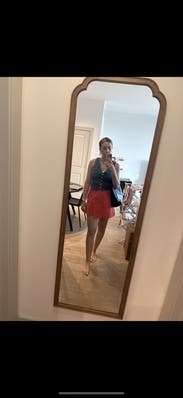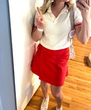 Wasn’t able to snag the top but the skirt itself is so cute and I love the color (tomato? coral? who knows)! Im typically a 6 and took a size 4 since I find wrap skirts to be forgiving but if you are curvy you may find it too tight.