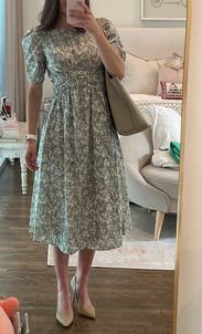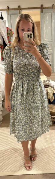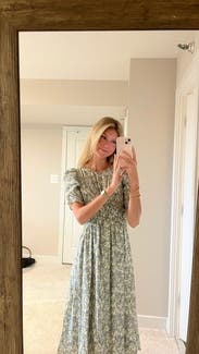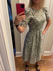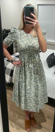 Pros: it is super comfortable with a cute pattern and very light material. Cons: it looks like a potato sack with puffy sleeves. My teenager asked if I was planning to churn some butter. My husband used the word “matronly”. Which was appropriate bc I thought it made me look 6 months pregnant thanks to the thick and awkwardly placed elastic waist. Overall, if you are working from home and it’s hot and you want to look put together it’s not a terrible option. But if you are going out in public and don’t want people to ask if you arrived via horse and buggy I would skip it.