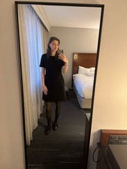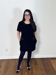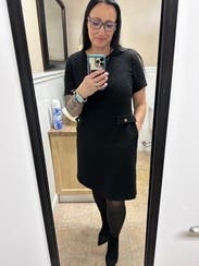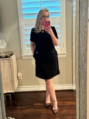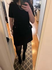 Loved this dress. Not too short, perfect for work. Looks so chic and flattering on!