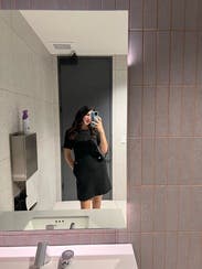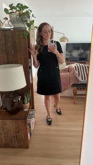 Wore for a work presentation! The pockets make it so there’s extra fabric around the hips that can result in the dress looking a little wider there. It didn’t bother me but if you’re conscious of the hip area maybe stay away