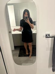 I’m 5’1 and I found that the dress lenght was a bit akward, especially when not paired with heels. If it was just an inch shorter, it would have been more flattering. The dress was also more of a snug fit on the torso and roomier on the bottom - at times I felt that I wish it was a bit less roomy around the hips. I wore it at a work conference and thought it was great for a formal work setting. The texture of the dress felt a bit more fun than a typical black dress, but also would not recommend renting during the summer.