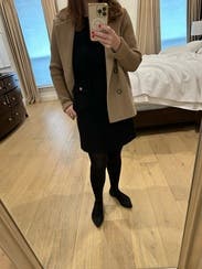 This black work dress was absolutely stunning. So classic with the feminine cut and brass buttons, and I loved that the fabric was thick and cozy. Will buy if the price drops!