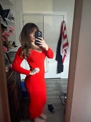 I absolutely loved this dress! The vibrant red color made me feel confident and radiant. The fit was flattering, but I added a belt to bring in the waist and give it a more defined silhouette. The fabric is high-quality, and the dress hugged in all the right places without feeling too tight. The added belt gave the look an extra polished touch. I received so many compliments, and this dress is perfect for any event where you want to make a statement. Highly recommend if you’re looking for a striking and versatile piece!