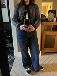 Great fit! Loved the crop look, and the shoulder pads add some great structure to it.