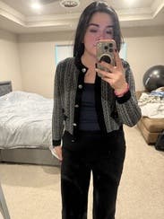 This blazer/cardigan screams professional. I felt confident and would rent again. Shoulder pads were different, but once you get used to that it’s all good!
