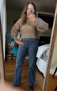 Loved this top. A little scratchy but not terrible. Definitely holds in warmth. Great colors and hit just over belt loops on jeans. Would rent again.