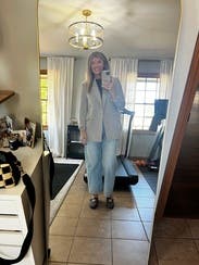 Paired with a dress for a day in the office then with black jeans and a white tee for an elevated everyday look. Love this blazer.