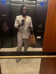 Great jacket I paired with a blouse and wide leg jeans. Felt modern and classic. Agree with prior comments the color looks much more gray in person than the photos