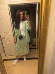 Loved the green and got many compliments on a trip to NYC. Could have sized down further, I knew it based on the earlier reviews yet took a chance because I wanted this look