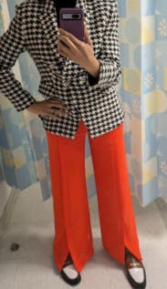 Rented this in advance of & to prep for the winter season … and overall it’s a MUST RENT! Will def rent again or buy when it gets cooler. I’d recommend to SIZE UP at least one size … maybe two if you want to wear something bulky underneath. This is the photo of the size 2 after originally renting the size 0. Size 0 would have worked but was much tighter in my shoulders and I have broad shoulders. The blazer itself is VERY WARM hence we recommending it for the winter. Bottom line … RENT THIS!!