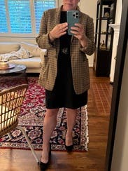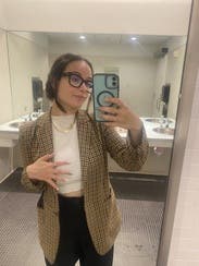 Professor for a day at Mizzou might be a hyper specific reason to rent this black and gold blazer, but it’s perfect for the occasion! It has a boyfriend fit, and it’s on the thicker side, so good for great for uber air conditioning or breezier days on campus.