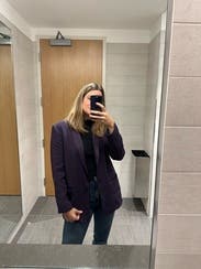 loved this blazer. perfect amount of boxy, looked cool and suitable for work. rented w the matching pants and was obsessed.