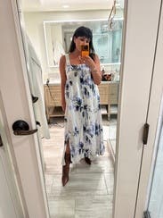 This dress has an oversized fit, which worked beautifully for me in my third trimester. The straps fell down a couple of times, but I was always wearing a tee shirt underneath, so it didn’t matter much. The fabric feels perfect for hotter days, too.
