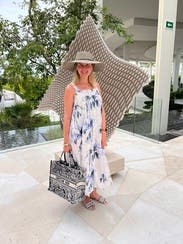 I love a good linen dress in the summer and this was no exception. Although it’s not the most flattering silhouette, it’s so comfy and airy and the wide straps cover a normal bra which is a rarity in summer dresses. It’s a great vacation dress. The cut is VERY generous. I sized down to - 10 but probably could have fit into an 8. The fabric really is very palm-tree heavy which I didn’t pick up on as much in the photo.