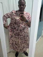 Wonderful work dress. Great colors (better than the picture), and comfortable material. It was a smidge big, so I'd size down.