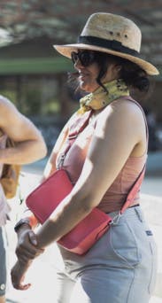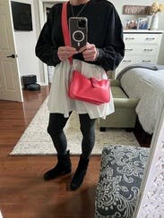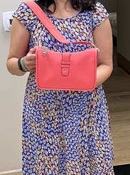 I tend to wear more neutral or dark colors, was nice to have this bag as a pop of color; good size- fit all of my normal purse things and wasn’t too big