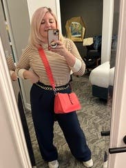 This crossbody was the perfect edition to my outfits to create a pop of color. It was large enough to hold my wallet, phone, compact, mascara, lip gloss and business. Are holder.