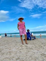 Cute color. Paired with a black tank and black flip flops which really made the pink pop. I'm between sizes, so upped to a 10 and I liked the look. The pleats make it a little poufy in front but I was going for a slouchy look.