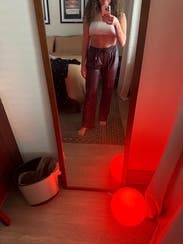 I keep renting this style and try to size down but in the end it’s just the style. I loved the color, but let’s face it, these were like wearing leather sweatpants. And there may be an occasion to where one wears leather sweatpants, but not in my 57yo life.