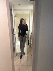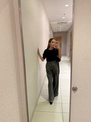 Great pant for work. The petite length was a smidge too short to wear with my heeled boots but would’ve been perfect with low heels or flats. These pants are looser fit. I wish I had worn them with a more fitted top. Next time!
