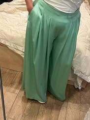 I call these my "fun pants". They are truly that. They are swishy, luxurious, and a beautiful color. Wear them to the office or for a night out. I've kept them an extra cycle because I may use them for a professional branding shoot. I love them! They are heavy so beware!