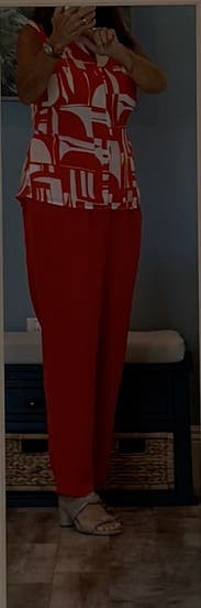 I love these pants! They were just a little bit tight on the waist but very light and bright for summer. The lightweight material is perfect for hot weather. Also the tuxedo stripes on the side are very flattering and a cool detail. My only small warning is that they wrinkle pretty easily so they don’t look super crisp but I love them regardless.