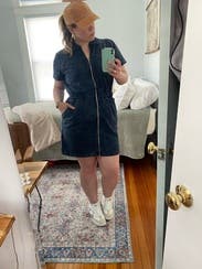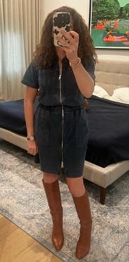 Loved this. Wore it once unzipped a bit with a long sleeved white bodysuit under it with tall boots and then wore it again on a warmer sunny day with cute summery accessories.