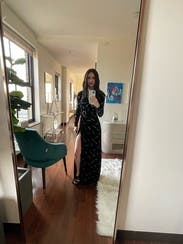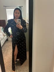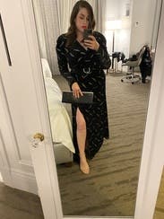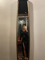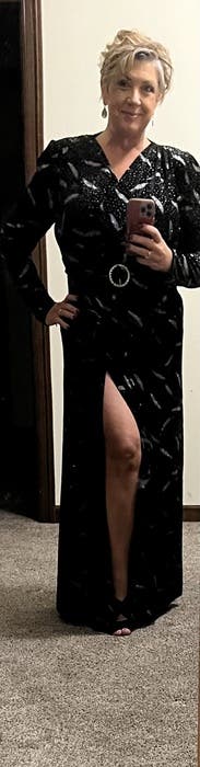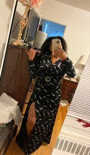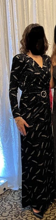 Absolutely stunning dress. The compliments I received while wearing this dress never stopped and it was so comfortable to wear. The only note I can offer on this one and it is not negative is the slit goes all the way up to the belt. I wore sequin black shorts underneath it because when I walked around, the slit opened up further than I like, but easy to make more comfortable. It turned out so beautiful too. The transaction itself was seamless and there were zero issues. So happy!!