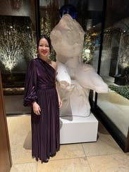 I wore this dress to a Christmas party and it was a beautiful fit and flow, the sparkle was just enough to catch the light and give off this purple regal vibrance! I love the asymmetrical top and the long billowed sleeve. I felt elegant and comfortable.