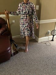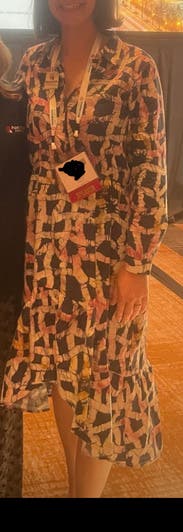 Fit great, flowed beautifully, lots of compliments. Length enabled lots of shoe options, even for tall gals! Light, wrinkles were easily covered with the unique pattern so it worked well for traveling. I felt great presenting at my conference. Transitioned well to dinner too!