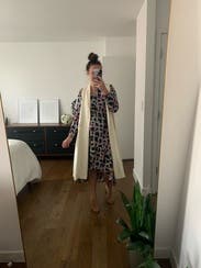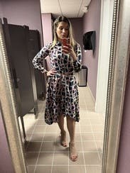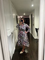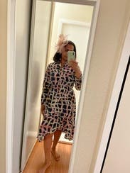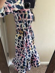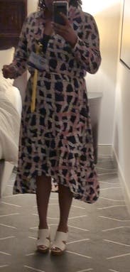 Got this for a work function in Miami, but the pattern in my size made it look like I’d had an accident! 😳 I ended up pinning some of the material in front to make a fold which partially covered the spot since it was a little big, but this is definitely one of those dresses where they weren’t as careful with larger sizes.
