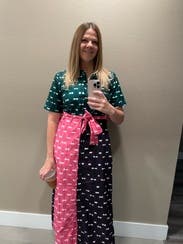 This dress is a great fit for curvy gals. Love the colors and the tie at the waist.