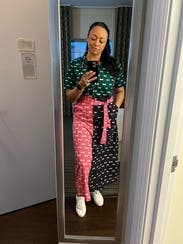 Such a fun dress! Absolutely loved this dress. I received so many compliments the day I work this to work. Will rent again.