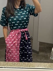 Loved the tie dyed fabric that made this basic shirt dress special.