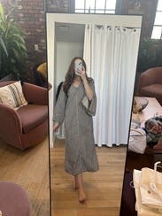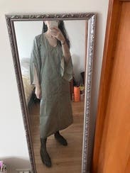 This dress is beautiful but wowwwww for something with such a huge price tag I would have expected it to be more finished. There’s no lining - not complaining, it’s a great hot weather piece- but it’s just a thin plain cottony (yet not cotton?) fabric. I was hoping for a silkier feel. Anyway, I got compliments (the sleeves are a cool detail) but it wasn’t terribly flattering. I’d wear again for an effortless vacation look.