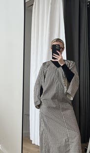 Could wear this in so many occasions, it might be a great investment. I just wore it to a track and field event. I am now driving to a cocktail bar, will only need to change shoes Made out of a crispy cotton poplin, perfect for a day like today (on the chillier side for summer) but could also be perfect when it is hotter .