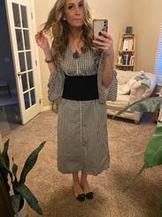 Wish I took a picture! Wore it with a thick black belt, heels, and chunky gold necklace to the office. Lots of compliments. Also wore to the playground with sneakers and sun hat. Should have just bought it now that I think about it.